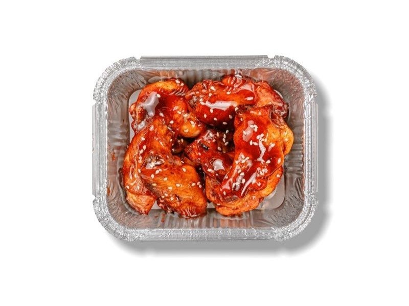 Обжаренные на углях крылья, поливаются соусом Терияки, посыпаются кунжутом
